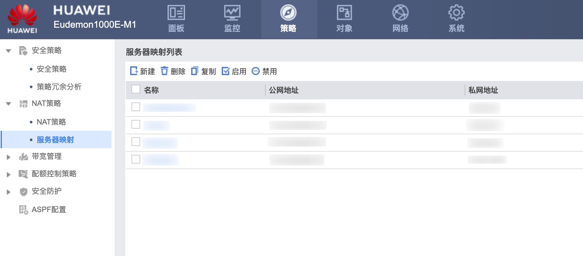 <Eudemon1000E-M> system-view # 进入系统页面Enter system view, return user view with Ctrl+Z.[Eudemon1000E-M] nat server <名称> protocol <网络协议 tcp/udp> global interface <接口ID,默认应该为Dialer0> <外网端口> inside <内网IP> <内网端口> no-reverse阅读后对文章有疑惑?联系作者!